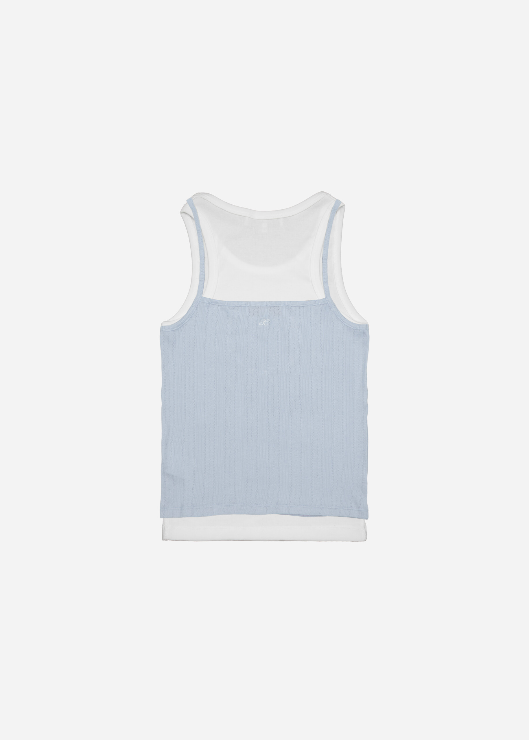The Double-Layer Tank Top is a versatile 2-in-1 piece designed to elevate your layering game. The first layer is a classic tank top made from 100% super-soft cotton, while the second layer, also 100% cotton, draws inspiration from innerwear with a subtle, playful, almost youthful aesthetic.
